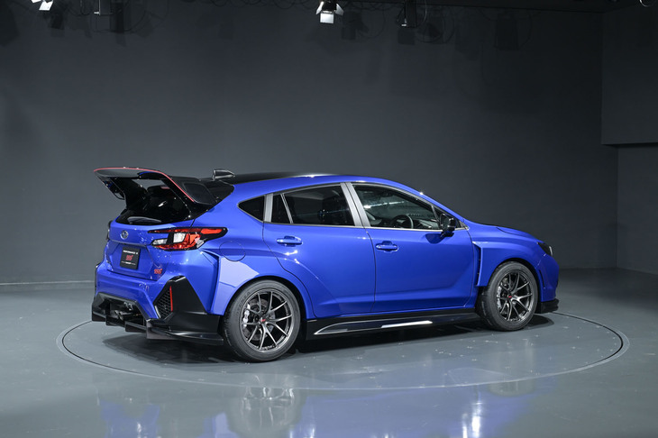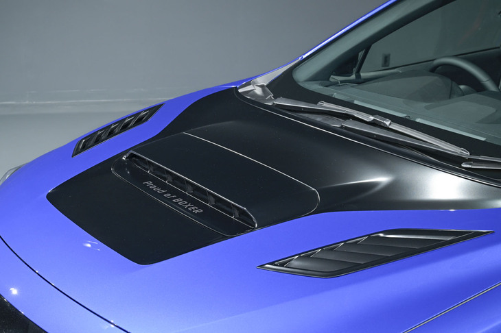 Some of the other surfaces hint at its potential for street builds. Its black-finished carbon-fiber hood, roof, and rear wing deck create a strong contrast from the WR Blue (of course). Weight-saving, yes, but also a nice tip of the hat to mod culture.